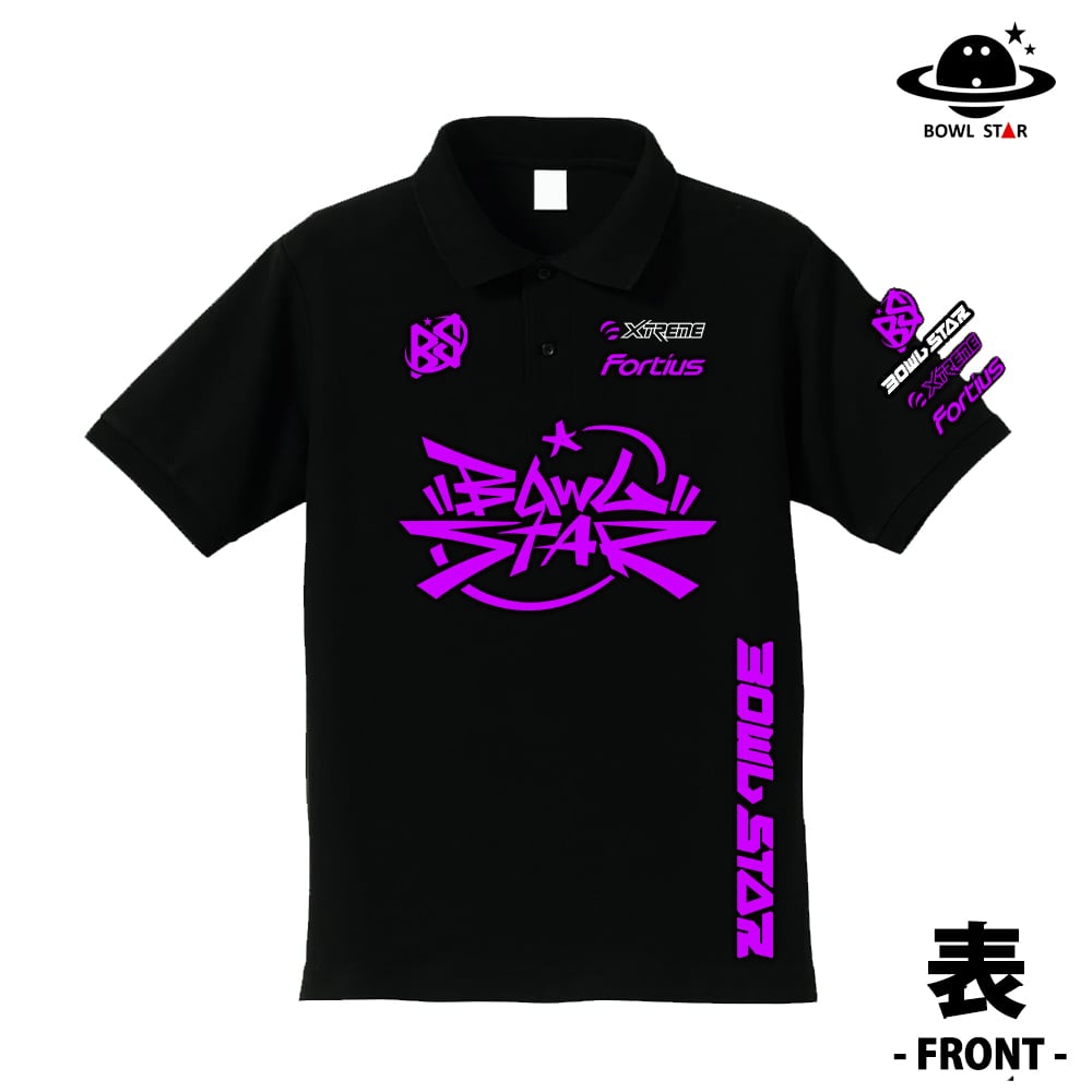 ◆ボウルスタースポーツポロシャツ・ヒップホップ ブラック&パープル【ポロシャツ】ネーム入り【受注生産:10営業日程度】