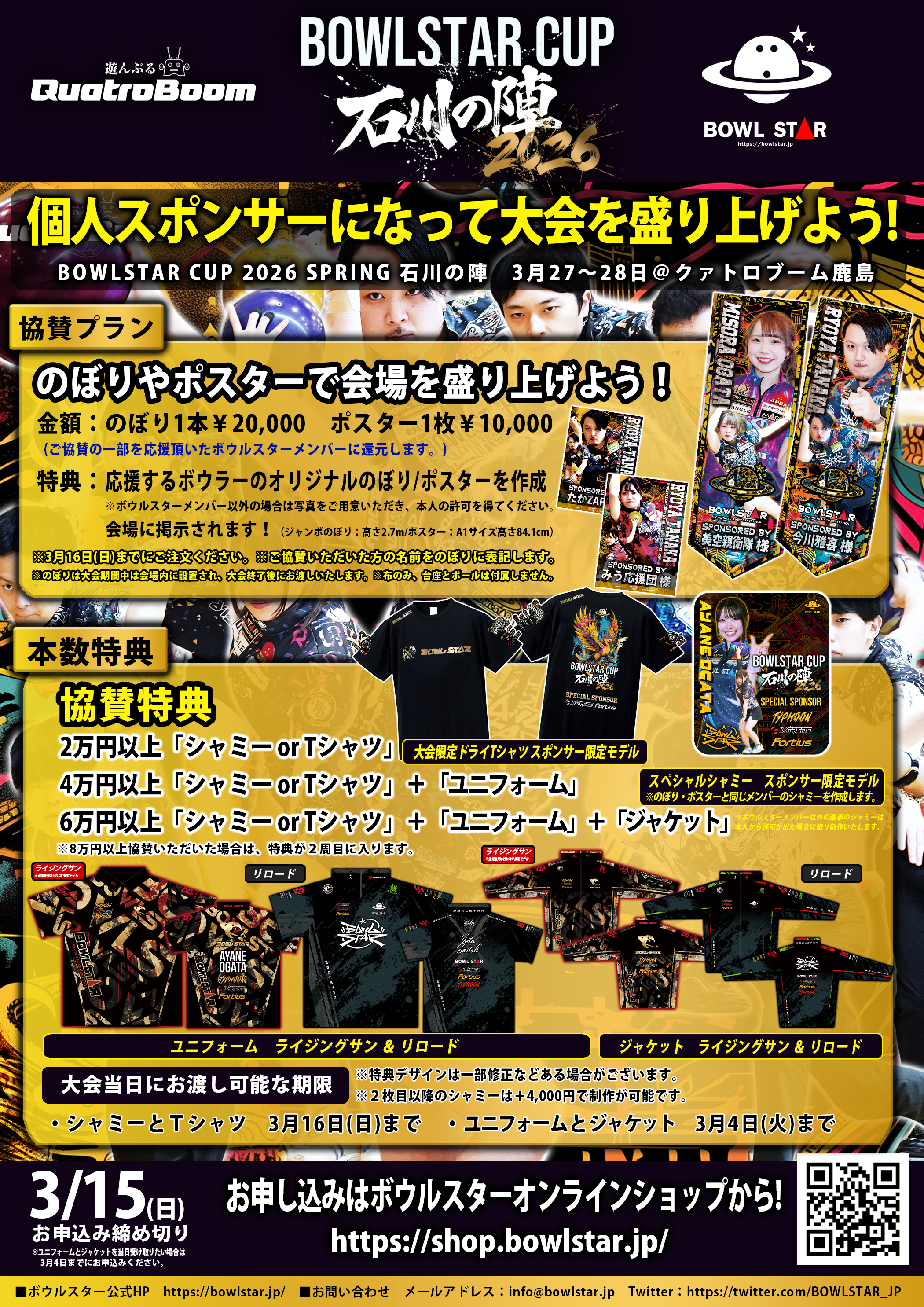 のぼり【大会協賛】ボウルスターカップ石川の陣 2026 シャミー・Tシャツ・ウェア・ジャケット