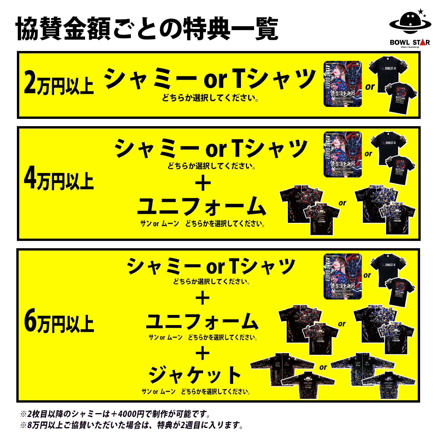 4万円以上 シャミー or Tシャツ + ユニフォーム