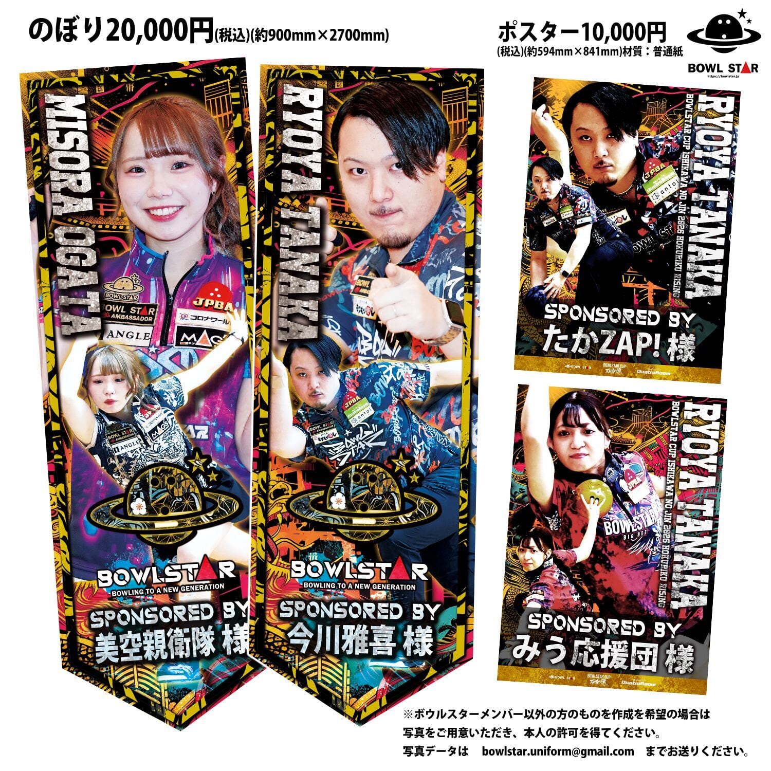 ※ボウルスターメンバー以外のポスター・のぼり・シャミーの作成を希望の場合は