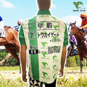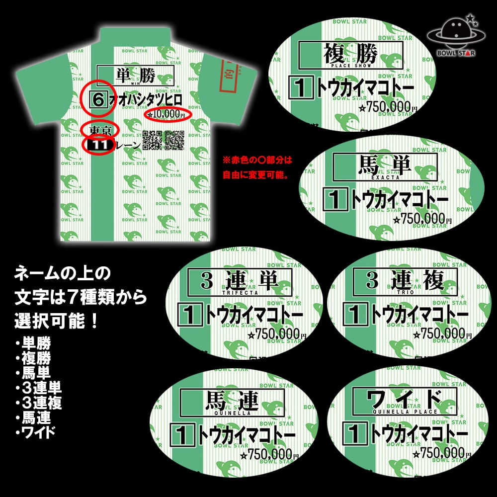 背中の文字は「単勝」「複勝」「3連単」「3連複」