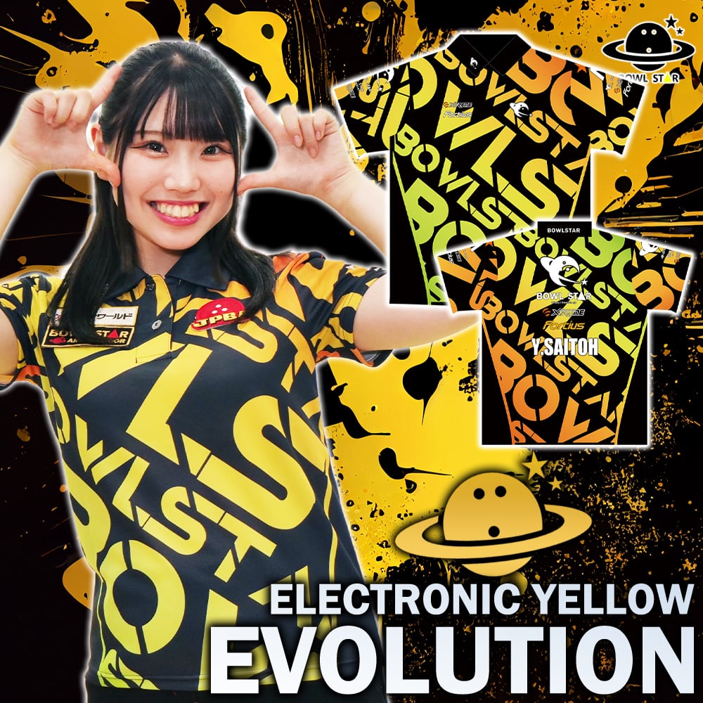 【1/15迄】ボウルスター・エボリューションエレクトロニックイエロー[ウェア-178]ネーム入り・完全受注生産【ポロシャツタイプ】