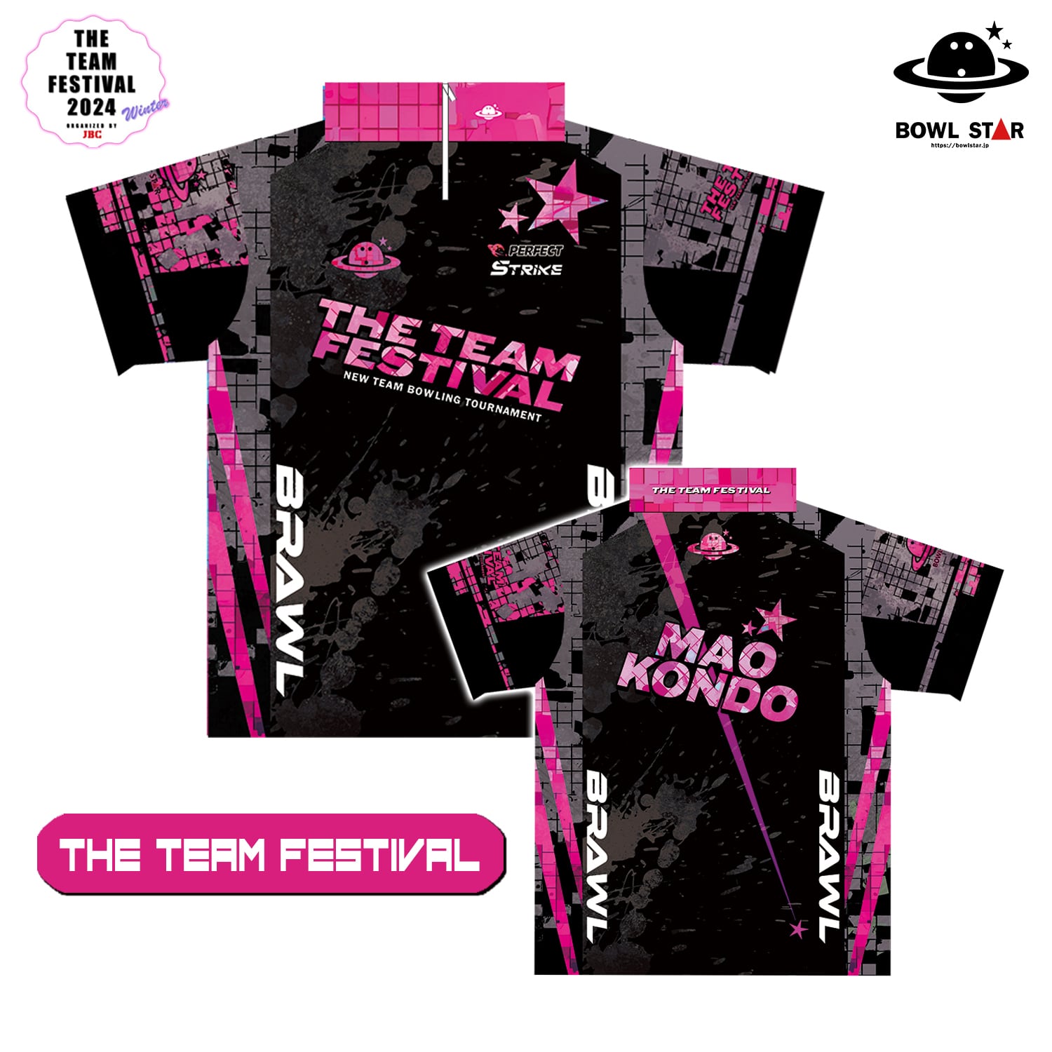 ボウルスター・フェスティバル ブラウル[ブラック&ピンク][ウェア-194]ネーム入り・完全受注生産