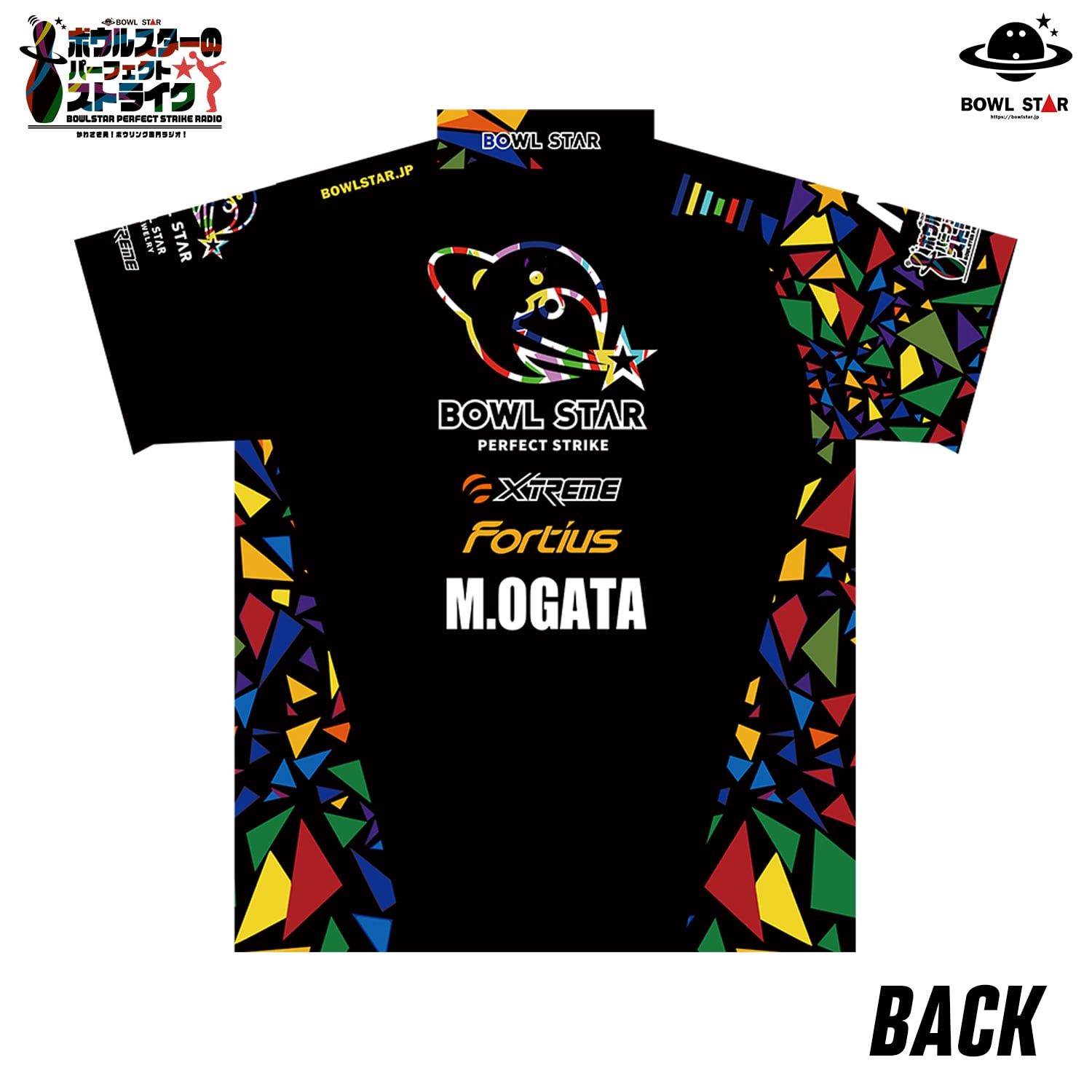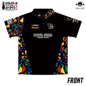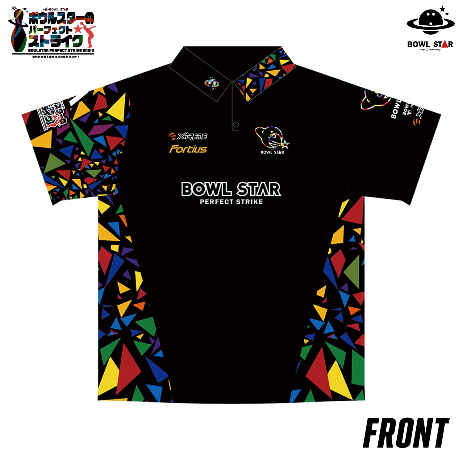 ブラックベースのシックで洗練されたデザインが特徴のユニフォームです。左右に舞うカラフルな紙吹雪柄が、暗闇の中でも光る一瞬の輝きを表現し、ボウリングのドラマティックな瞬間を引き立てます。中央に配置されたボウルスターのマークが、プレイヤーの力強さと自信を象徴し、勝利への意志を一層強調します。このダークな美しさで、あなたのパーフェクトストライクはより一層輝きを放つことでしょう。